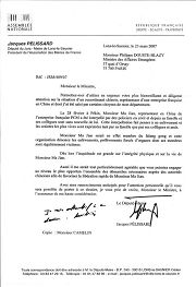 三月二十三日,法国Jura省议员、Lons le saunier市长及全法三万五千五百位市长为成员的“法国市长协会”主席雅克•佩里萨先生(Jacques Pelissard)致信法国外交部长飞利浦杜斯特-布拉齐先生(Philippe Douste-Blazy),表示对马剑所面临的被强行摘取器官、乃至生命危险表示特别关注,并吁请外长运用必要手段促使马剑先生快速获释。信件译文如下: