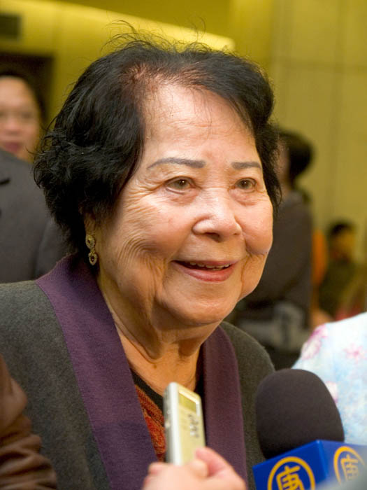 台湾著名商城京华城总经理沈庆光夫妇,四月八日下午陪九十三岁的妈妈观赏神韵艺术团演出。老夫人的家乡在广东潮州,舞蹈的内容让唤起她年轻时的回忆,受访时她神采奕奕的表示,走过那么多国家,看过无计其数的表演,就以神韵艺术团的团员演出最为用心。