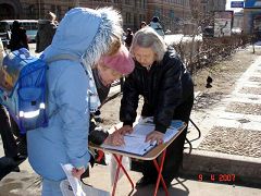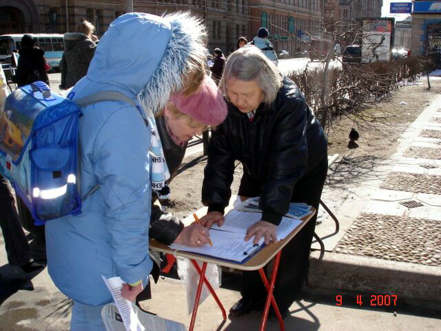 ![]() 法轮功学员们走上街头,把真相告诉俄罗斯人民 |