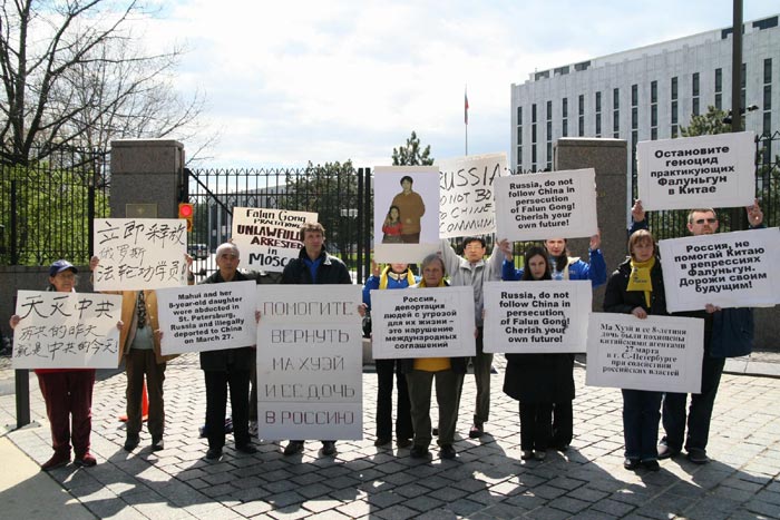 ![]() 修炼后身心受益的俄罗斯学员抗议俄当局非法遣返同修马慧母女 |