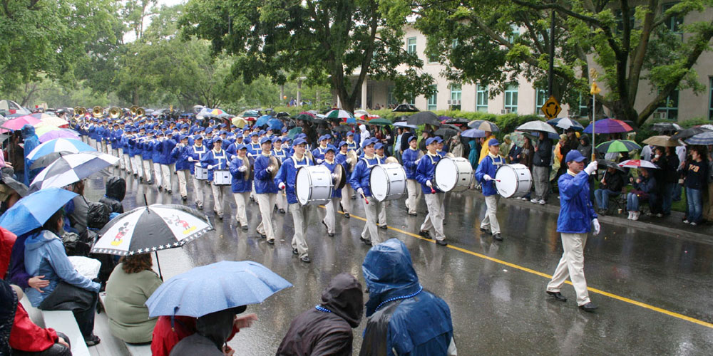 ![]() 法轮功学员组成的「天国乐团」在游行队伍中成为注目的焦点 |