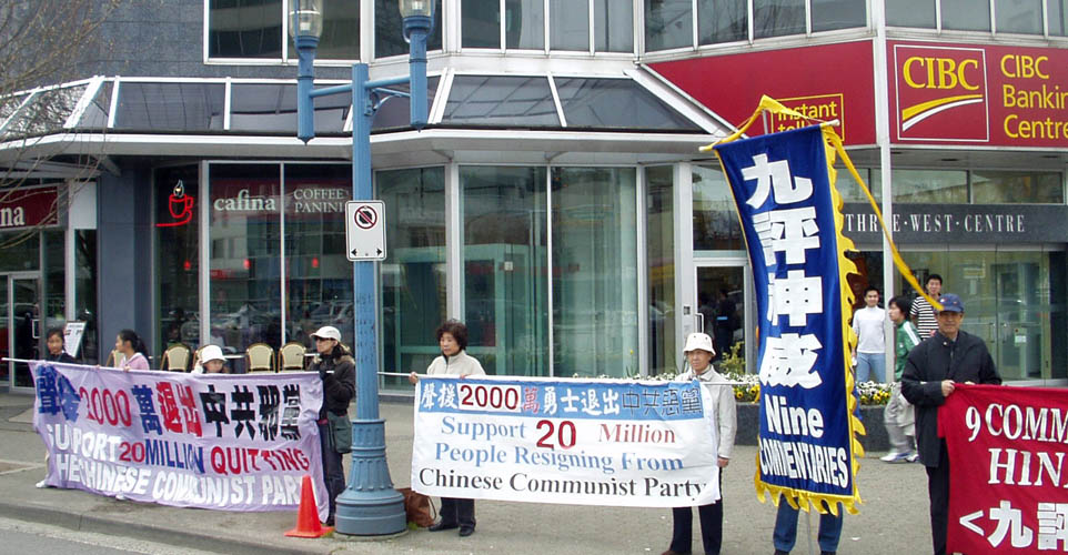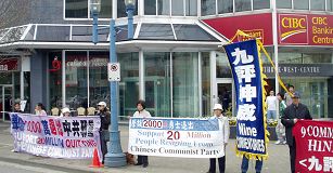 ![]() 声援两千万中国人退出中共的活动在列治文市中心举行 |