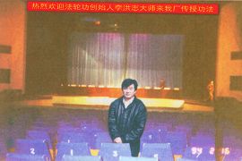 下午两点师父在仙河影院讲法,讲法台上悬挂的横幅是“热烈欢迎法轮功创始人李洪志大师来我厂传授功法”。有个学员看到来听课的只有一百二十多人,问师父:“人来的太少了,不讲吧?”师父说:“向前看,人还多着呢,讲!”