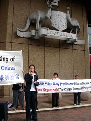 谢焱说:“法律在中国是被践踏的,象我们这些受迫害的法轮功学员是没有地方伸冤的,所以在澳洲这片自由、尊重人权的国度里,要运用法律来为自己和所有(在中国)受迫害的法轮功学员鸣冤,将陈绍基之类的罪犯绳之以法。”