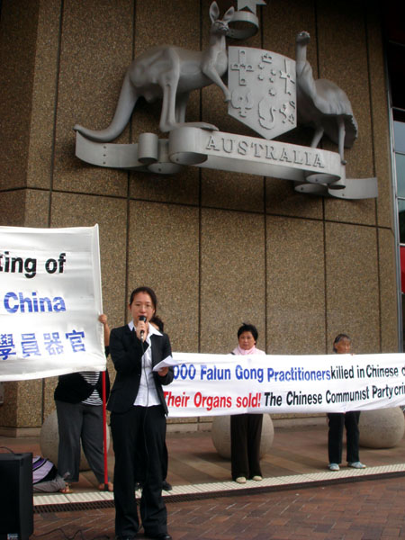 新闻发布会由原芭蕾舞蹈教师考琳(Colleen)女士主持。发布会结束前,考琳女士介绍,中共对法轮功学员的迫害在广东省和中国其它地区仍在继续,就在三月份国际大赦组织还专门为八名在广东被非法劳教的法轮功学员发紧急行动通知,呼吁国际社会帮助营救这些法轮功学员。考琳表示希望更多澳洲民众支持这些人权起诉案并关注和帮助制止在中国对法轮功的迫害。