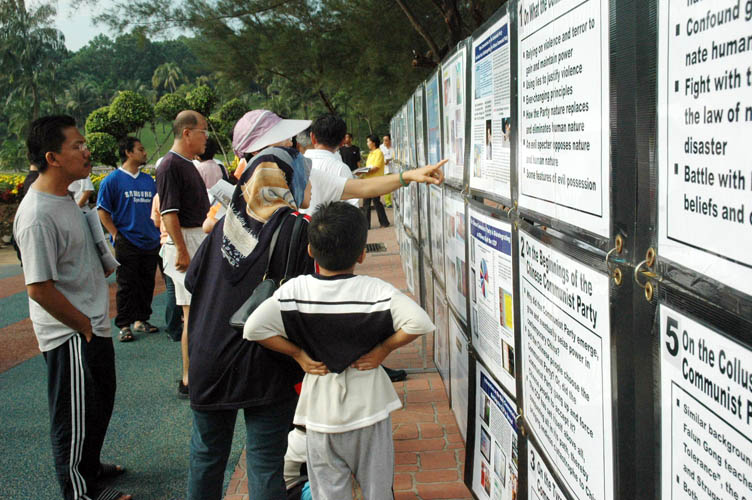 ![]() 集会现场揭露中共残暴的真相图片吸引大批民众围观 |