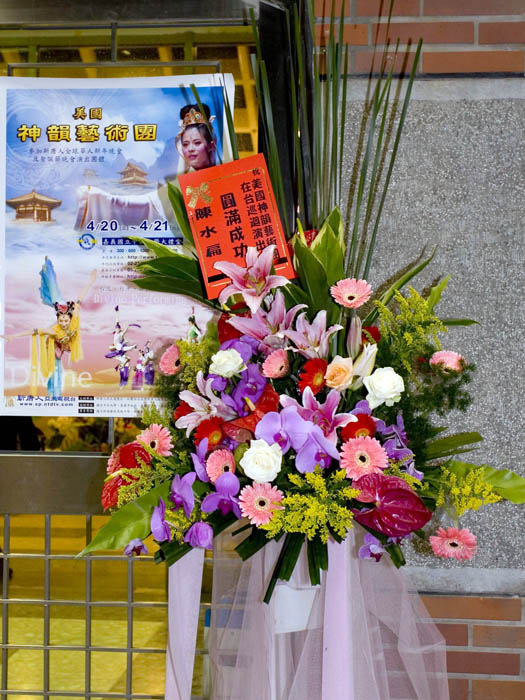 ![]() 台湾行政院长苏贞昌致赠花篮祝贺「美国神韵艺术团演出成功」 |