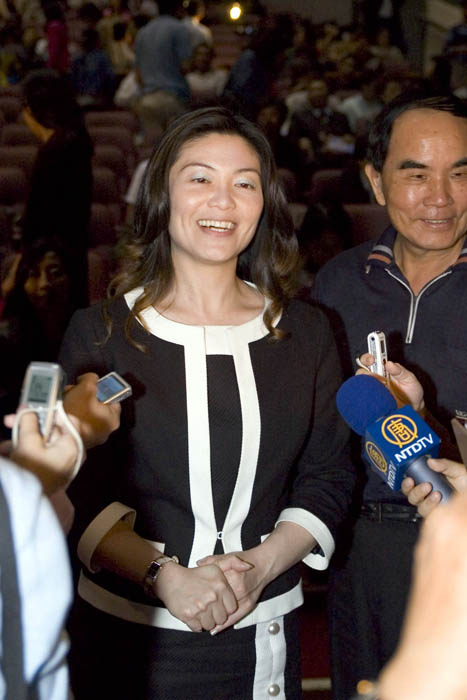林咣沂的夫人郑女士也一同观赏了晚会,她说神韵的演出令人叹为观止,甚至扫除既有的阴霾,使她整个天空都明亮起来。