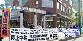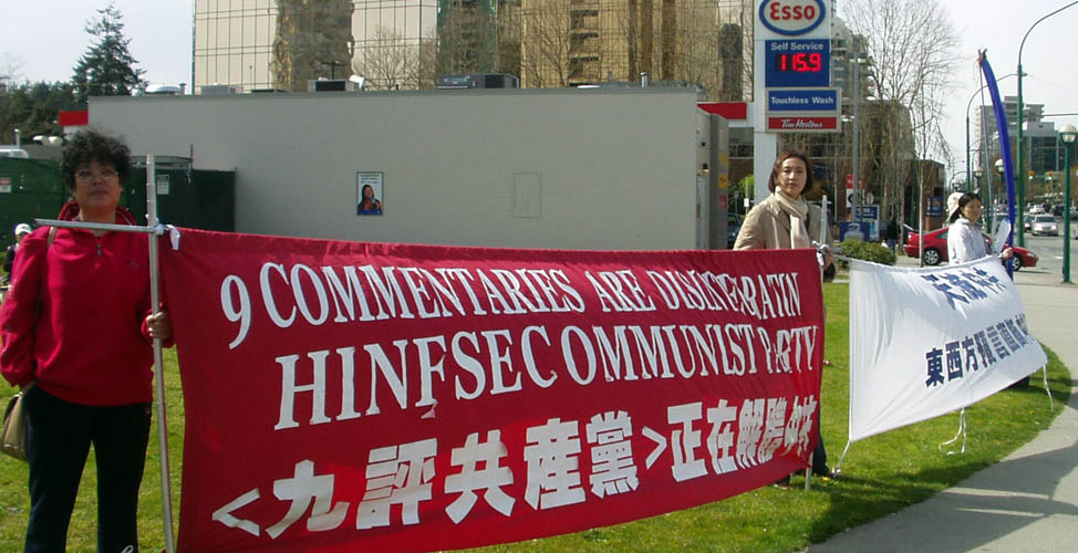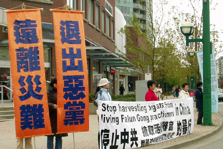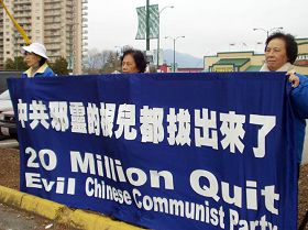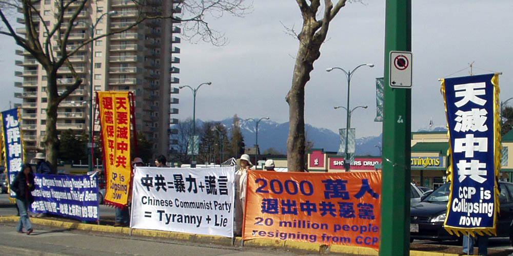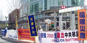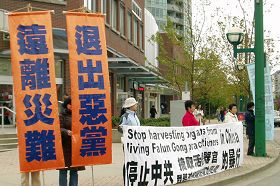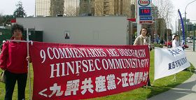 组图为温哥华学员二零零七年四月二十一日在本那比市讲真相、声援三:退.(退出中共党、团、队)的活动图片。