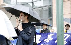 纽约中领馆门前,阴雨绵绵,冷风袭人。