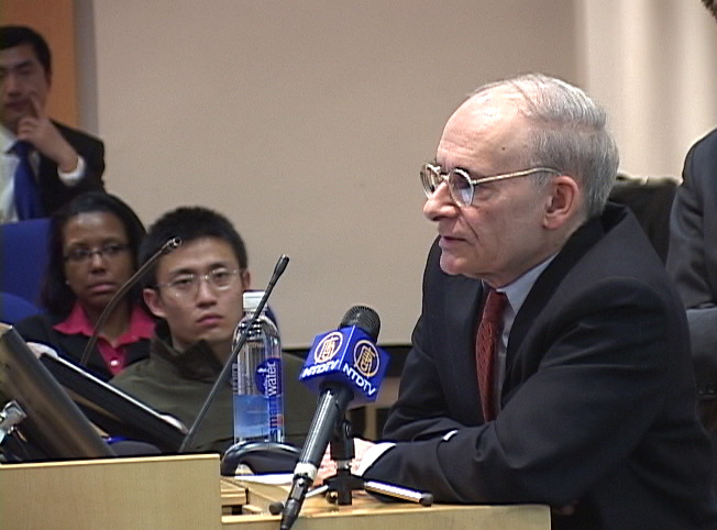 针对现场有人举牌发难和照相,杨景端略带风趣而又严肃的指出:早上在哥伦比亚大学开研讨会时那些人的表现更差劲,相比而言这里的这些人还算文明一些。其实你们根本没有必要这样做。我作为一个心理学医生,我可以给你们分享一个‘斯德哥尔摩综合症’的病症概念,一个人在被扣押或受控制时,如果那个罪犯给了他一点好处,这个人可能就会对那个罪犯产生一种奇怪的依赖情感。我建议你们回去想想自己是否有类似症状。我自己刚到美国时也不能容忍别人说中国一点不好,因为我那时根本分不清中国、中国人民、中国政府、中共到底有那些区别。