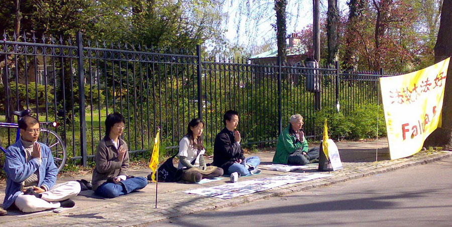 为了纪念这个特殊的日子,二零零七年四月二十五日上午十时许,丹麦部份法轮功学员来到中共使馆门前,抗议中共对法轮功学员的迫害。他们中有年届八十的退休丹麦老人鲍尔,五年来,无论酷暑寒冬,还是风雪暴雨,他每天到中共使馆前抗议对法轮功的迫害,从无间断;有的在公司任职的学员放下手头繁忙的工作,请假抽时间特意赶来;他们中还有放下繁忙的学习赶来的学生和其他社会各阶层人士。