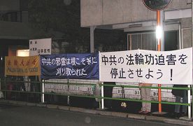 妹妹在中国遭关押迫害的大法弟子周金华也来到中使馆前呼吁制止迫害。她说:“一九九九年七月二十日,中共的江泽民发动了对法轮功的非法迫害以后,到今年是第八个年头了,国内成千上万无辜善良的大法弟子承受着残酷的、无人性的迫害,象这种迫害当中包括:打死就算他们自杀,对于活着的人竟然活活摘取他们的器官,然后通过非法渠道再贩卖。就在今年的三月十九日,我的妹妹周美华(法轮功学员),在中国大陆在楼道里贴真相不干胶的时候被大连市中山区区委街派出所的警察抓去了。她被带到大连市劳动教养所以后,我们家里人任何消息也没有得到。在这样情况下,我通过各种渠道向大家讲真相:全世界有八十多个国家的人在学炼法轮功,商界、政界、政要人士都在支持法轮功,善良的人们都发出正义呼吁,停止这场对无辜法轮功学员的残酷迫害。我把这些形势也都转达给了抓我妹妹的警察及当事人,但是他们的态度比较恶劣。这些警察就觉的中共给他们饭吃,他就听中共的命令,迫害无辜的法轮功学员是应该的。四月十七日的晚上,他们又瞒着我们的家人,把我妹妹送到世人皆知的、迫害法轮功学员非常非常残酷的辽宁省马三家劳教所。我妹妹仅仅是中国大陆千千万万受迫害的法轮功学员当中的一个,目前我还可以在海外去营救她,去呼吁,把这些正义的声音传向那些迫害他们的警察、刑警、公安局。可是呢,中国大陆还有无数的法轮功学员就可能被中共操纵下的警察、医院活活的摘取器官,被虐杀、被打死、甚至于被枪杀。”