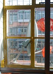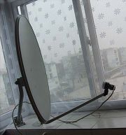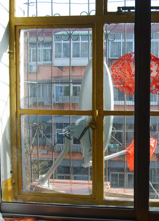 (3)楼房西侧越朝南斜(俗称朝阳),接收难度越大;越朝北斜(俗称朝阴),接收难度越小。因为W5卫星为南偏西方向,楼房越朝阳,窗框阻挡的根数越多(楼房较正的只有一根竖框阻挡)。楼房越朝阴,锅面与窗户的倾斜角越小,窗框越不容易阻挡,接收面积越大(纯属外行,不知这样表述是否准确),接收起来就容易些。