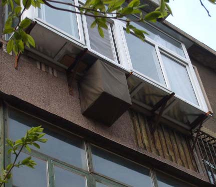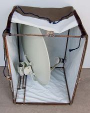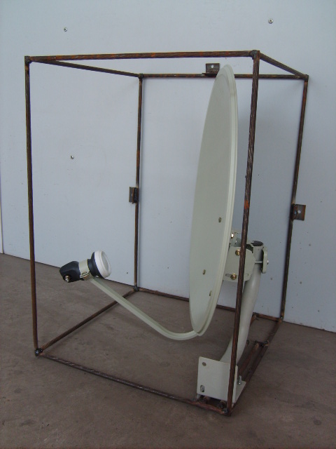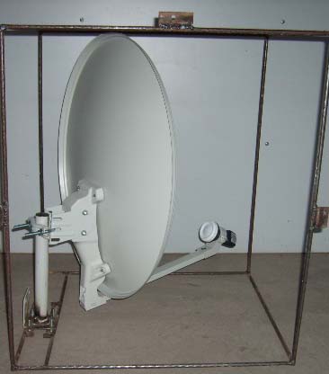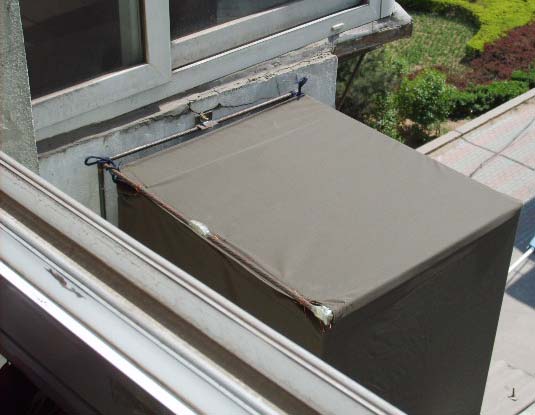 这种方法就是用钢筋焊一个长方形框架,把KU天线装在里面,固定在阳台矮墙外面或窗户外面,再做一个布套把框架包上,从外面看就象一个空调室外机。下面做一下详细介绍: