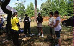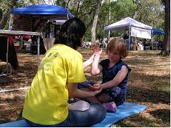 在一整天的活动中,人们络绎不绝的来到展台前索取法轮功的资料。学员不断的展示五套功法,他们在周围喧哗环境中所显示的宁静、舒缓而优美的动作吸引了众多游人的目光。很多人都问,这是不是太极,学员们利用这些机会向人们讲解法轮功和其它的锻炼方法的不同。法轮功是修炼的功法,不仅仅是炼功,更重要的是心性上的修炼,按照真善忍的要求来做,才会有真正好的健康的身体。很多人都表示要到当地的炼功点学功。