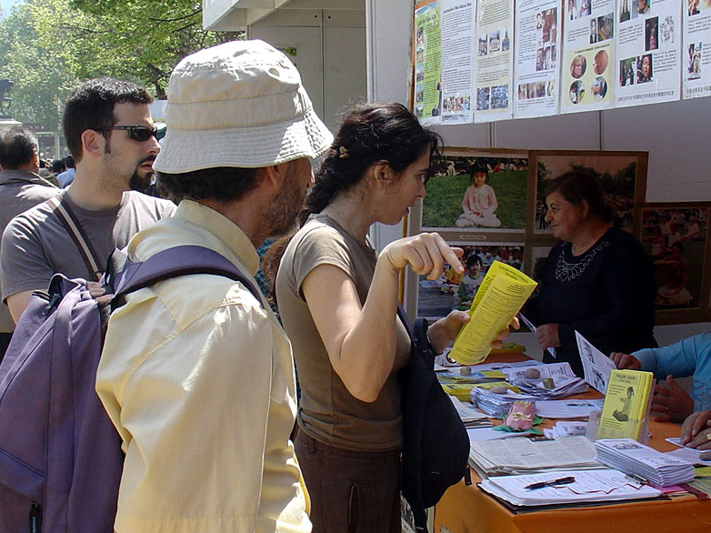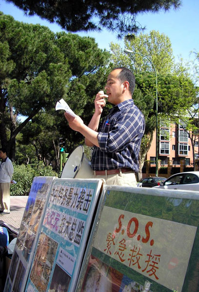 纪念“四·二五”,西班牙法轮功学员中使馆前和平抗议中共暴行 |