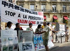 法国法轮功学员胡先生表示: 自中共于一九九九年迫害法轮功以来,我们每个星期天都在巴黎著名的人权广场揭露中共对法轮功灭绝人性的迫害,把这些罪恶在世界面前把它曝光。迫害一天不停止,我们将一直揭露迫害、以和平的形式反迫害。」