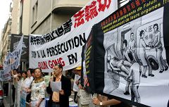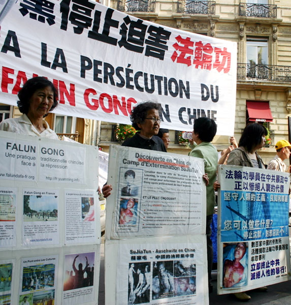 ![]() 巴黎法轮功学员中使馆前纪念「四二五」和平上访八周年,抗议中共对法轮功学员的残酷迫害 |