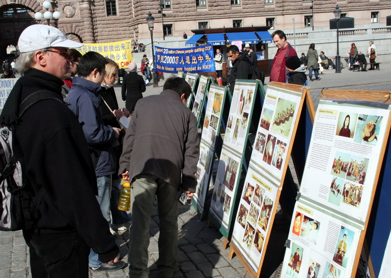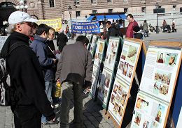 其后,集会移到了市中心的钱币广场(Mynttorget),继续向斯德哥尔摩的市民和游客介绍退!党!信息。集会民众在钱币广场还摆放了揭露共产党罪恶的《·九·评*》展板。
