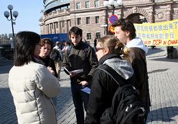 参加集会的除了来自斯德哥尔摩的华人外还有来自瑞典第二大城市哥德堡的华人。大家在集会上踊跃发言并用扩音器向中使馆喊话,向中使馆工作人员介绍退!党!的真实情况,呼吁其顺应天象,脱离中共,退!党!保命。