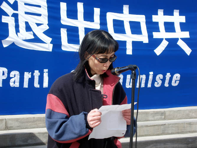 四十八岁的张继延是中共驻加大使馆内一位财务人员的妻子,三月三十日她公开站出来,声援在加拿大渥太华举办的两千万人退出中共的全球性活动,并在国会山庄新闻会上发表声明,退出中共。