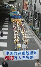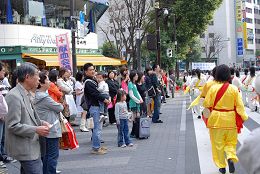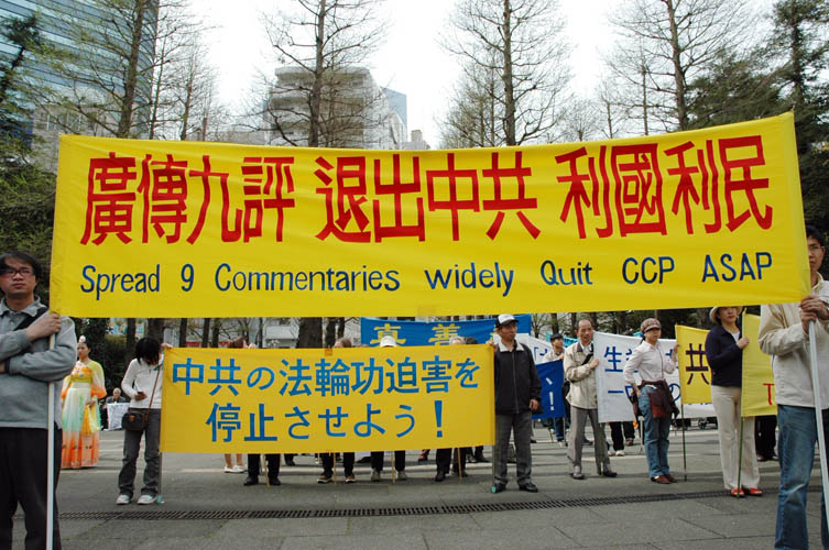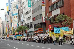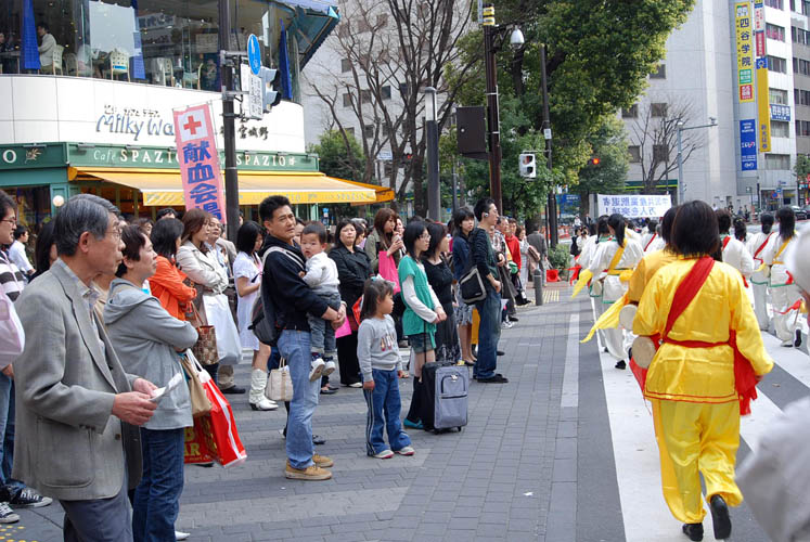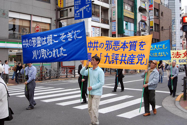 集会后,声援者穿越游客聚集的池袋及新宿区举行了约两小时的游行。游行队伍从池袋出发穿过市区至高田马场,队伍中有腰鼓队开道,队伍后面仙女压阵,引来沿途大量市民驻足观望,部份大陆游客更对公开谴责中共感到高兴,另有了解退!党!重要性后当场表示退!党!的游客。