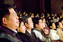 ![]() 美国神韵艺团台北首场演出,冠盖云集,显示台湾社会对于人类正统文化的重视及珍惜 |