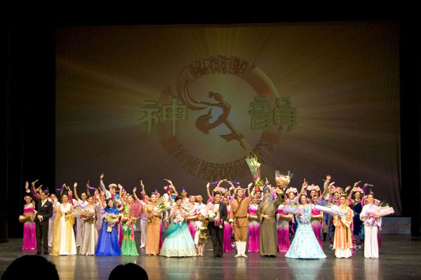 ![]() 神韵艺术团演员谢幕三次,台北观众仍不愿离开,掌声不断 |