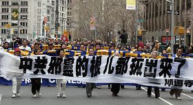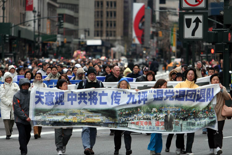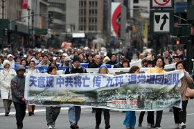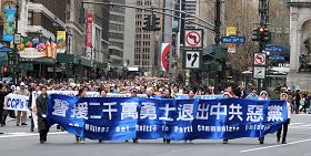 还有一个张先生家在布鲁克林,也是特地赶来曼哈顿看游行的,他说,“游行的本身造成的影响很大,两千万退!党!的数字对我影响很大,游行的人这么多,一眼看不到头,中共没倒是因为时间没到,只是个时间问题。”