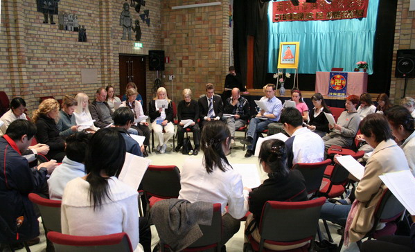 除大会交流外,还组织了集体学法和个人交流。时间悄然飞逝,一眨眼已是下午七点,法会圆满结束。同修的心得交流触动着每个大法弟子的心灵深处。使很多学员都看到了自己和别人的差距,彼此互相勉励,愿精進实修,以救度众生为己任。同时大家都为能成为一名正法时期的大法弟子而感到无比的幸福。