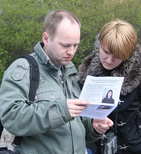 法会后第二天,学员们在斯德哥尔摩著名的沉船博物馆旁组织了集体炼功、发正念、讲真相等活动。这天天气格外的好,来这里的中国游客特别多,很多中国人对在这里见到法轮功感到特别惊讶。有人在不停的拍照、摄像。