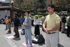 ![]() 法轮功学员在中国城花园角广场炼功 |