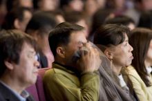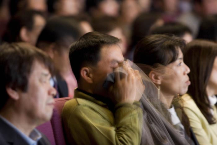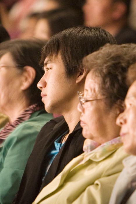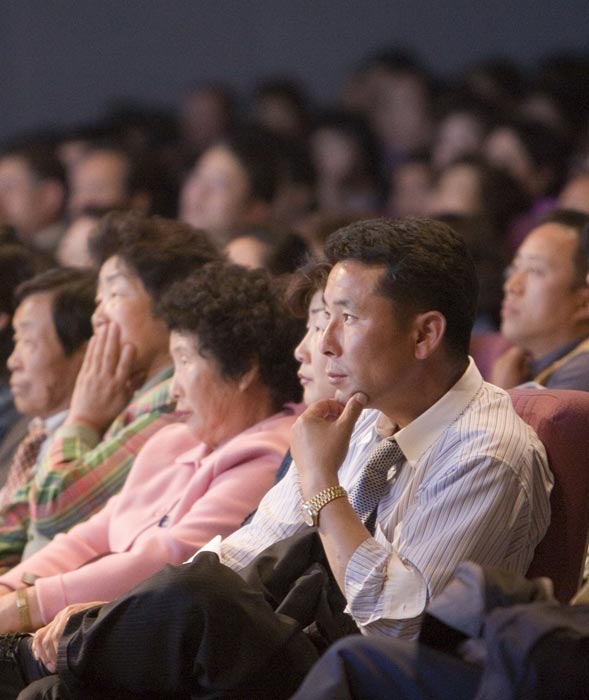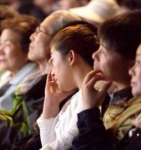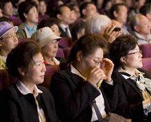 美国神韵艺术团在韩国的演出,由于韩国政府屈于中共压力,签约的剧院曾经数度取消了「神韵」来韩的演出合同。四月二十四、二十五日,韩国民众终于盼来「神韵」,也印证神韵的表演是超越任何政治与国家,其表现纯正美好的艺术内涵撼动了内敛的韩国民众。俗话说:「无声胜有声」,照片中诉说着神韵带给人们的美好,已经不需言语也胜过千言万语。