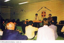 第一天的讲座师父就谈到他是在往高层次上传功,往高层次上传功那就是度人。我当时心里一震,以前度人的只有耶稣和释迦牟尼佛,难道他是……?慢慢的师父的讲法深深的吸引了我,内容深奥,都是以前从未听到过的。我觉的讲的太好了,使劲鼓掌,想请师父多讲点。师父说,已经讲了快两个小时了,不能再多讲了,有些人的身体会受不了。就这样我就一堂课接着一堂课听了下来。