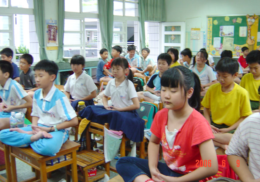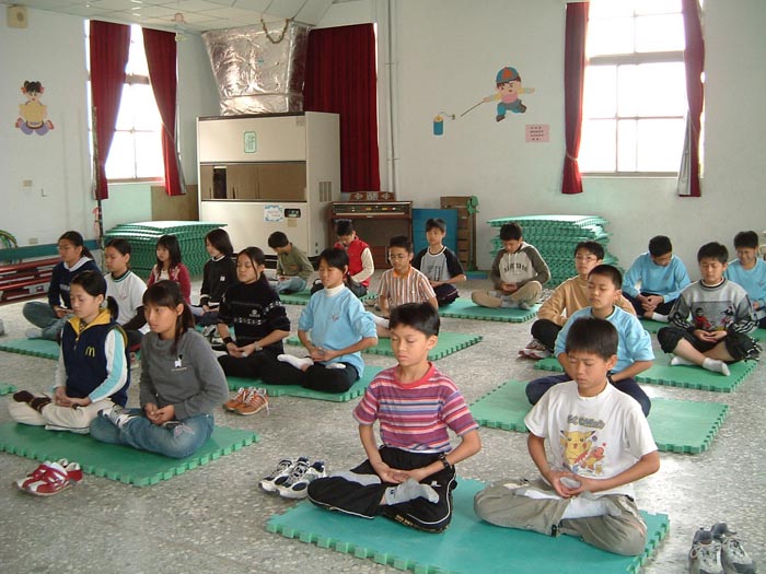嘉义市兴嘉国小中年级开办法轮功社团,每次上课都要去搬十几张塑胶椅子,把教室挤的满满的,这种盛况也是学校从没有过的