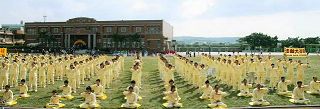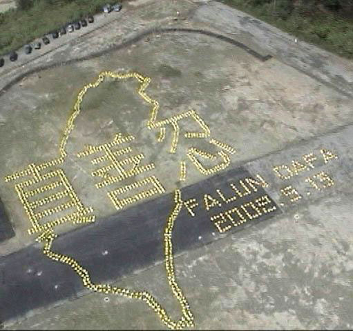 ![]() 二零零二年五月十三日台湾法轮功学员在南投日月潭以大型排字庆祝世界法轮大法日 |