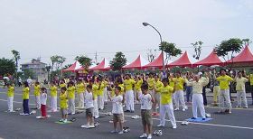 ![]() 二零零四年五月九日宜兰法轮功学员受邀参加苏澳荣民医院的院庆园游会举办图片展览并参与功法表演,颇受该医院正副院长及来宾好评 |