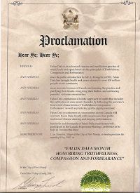 因此,我 Joe Trasolini满地宝市市长以此褒奖二零零七年五月为“法轮大法-真善忍月”。