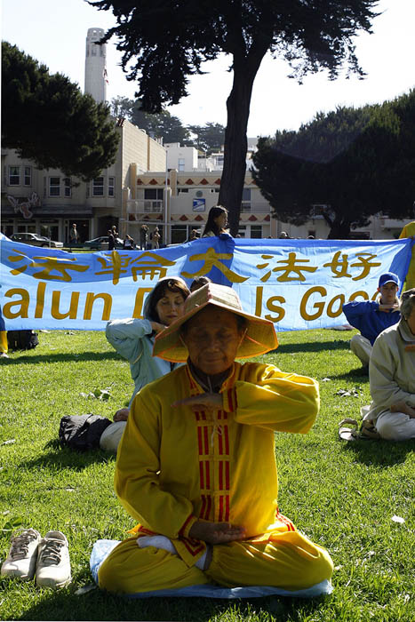 刚刚从广东台山来旧金山的李女士表示,她看了法轮功学员的活动,觉的很祥和,她问在旧金山哪里有炼法轮功的。