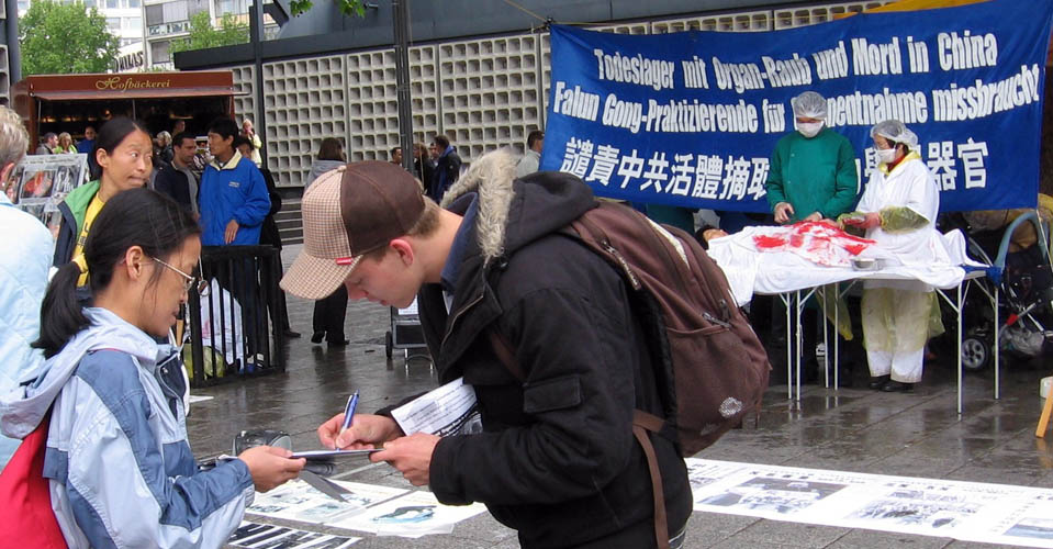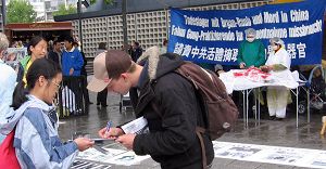 ![]() 路人签名抗议中共活体摘取法轮功学员器官 |