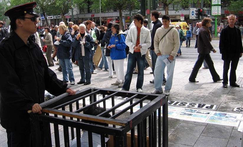 现场驻足观看的路人,对法轮功学员所揭示的迫害的残酷程度无不表示震惊,一位德国女士表示:“这太恐怖了,现在还有这种事发生。”