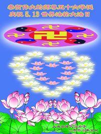 自从一九九二年五月十三日李洪志先生在长春开始传授法轮功以来,十五年后的今天,全球近百个国家和地区都有人修炼法轮功,《转法轮》被翻译成三十多种文字,深受各族裔的喜爱,“五•一三”已成为世界性节日,每年的这一天,普天同庆这个法轮大法开始洪传的日子。