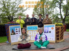 法轮功学员在慕尼黑的卡尔斯广场挂起了“世界法轮大法日”、“普天同庆”等横幅,向市民和游客介绍法轮功,向人们赠送印有“法轮大法好”字样的气球和学员精心制作的小莲花。不少民众被法轮功学员优美的炼功动作所吸引,前来了解什么是法轮功,也有不少人打听炼功点的情况,希望能就近学炼法轮功。