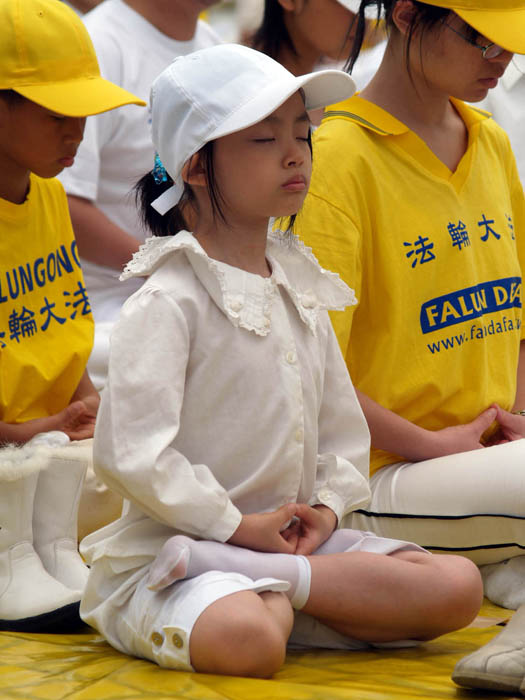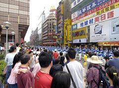 ![]() 炼功队伍吸引许多民众的询问,哪里可以学法轮功 |