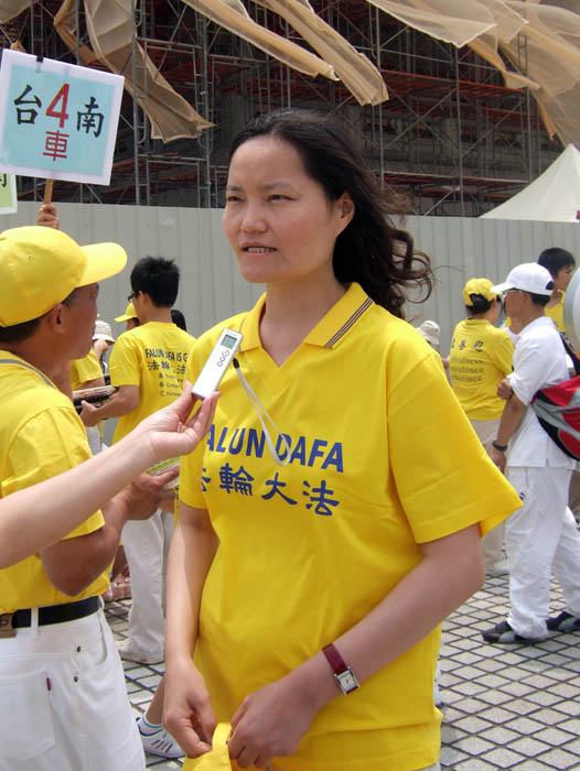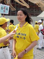 「虽然中共怎么说法轮功不好,但是台湾民众知道中共的话不可信,民众看新闻自己会去思考」,「结果那年暑假有非常多的人学法轮功,有个炼功点本来只有二三十人学,那年七月超过一两百个人来学,甚至站到马路上去,因为都挤不下了。还有上九天班的人数也是迅速增加。」