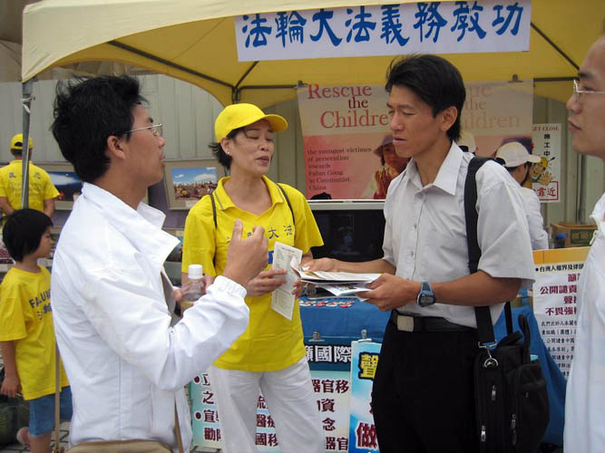 从网路知道这次五一三活动的钱先生,是新竹教育大学体育系学生。他很仔细的询问法轮功的相关问题,并留了联络资料请学员把如何学炼法轮功及新竹的炼功点信息寄给他。