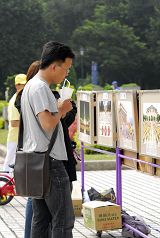 ![]() 从网路上得知活动的钱先生,很仔细的询问法轮功的相关问题 |
