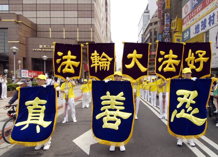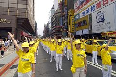 三重的一位先生看到游行队伍的盛大,很好奇的询问举横幅的学员说,你们从哪里开始呢?记者赶快回答说,从中正纪念堂开始,绕行总统府四周及火车站,这队伍仅七百多人而已,尚有五千人仍在中正纪念堂排字炼功。他哇了一声,这么多人炼法轮功啊!我脊椎侧弯,脚不能蹲能炼功吗?“当然可以”。他听了很高兴,说,那三重市哪里可以学炼?