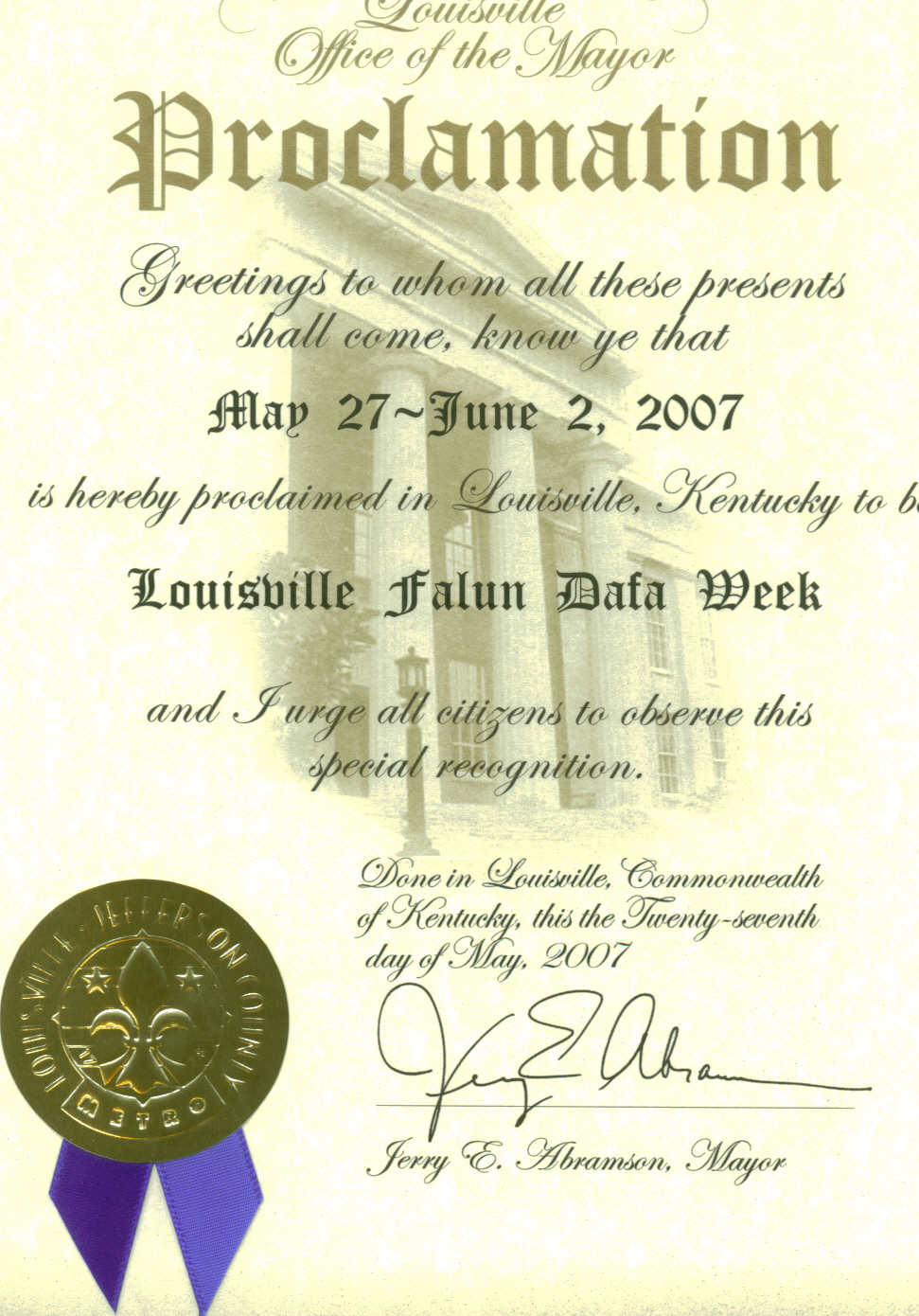 特此宣布二零零七年五月二十七日至六月二日为肯德基州露易斯维尔市